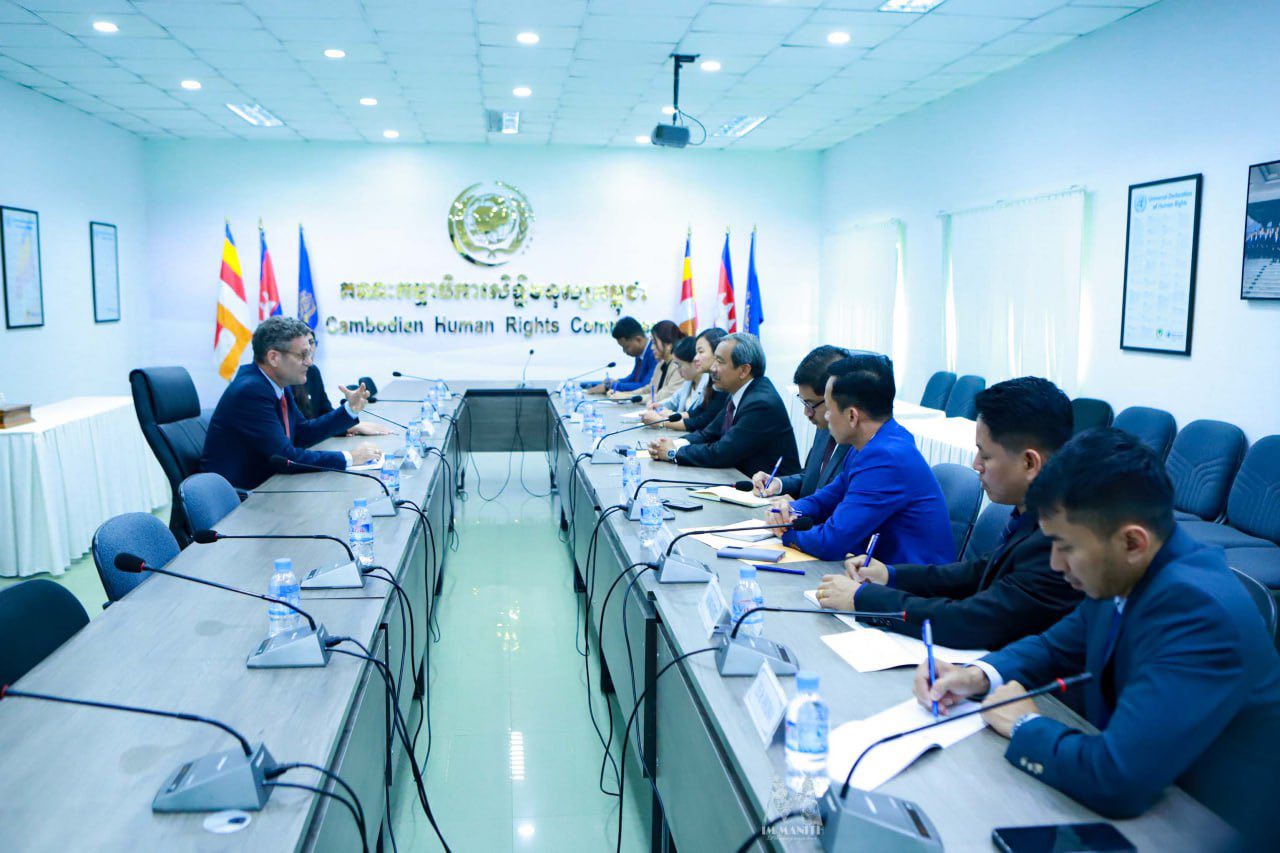 នៅរសៀលថ្ងៃទី១២ ខែមករា ឆ្នាំ២០២៦ នៅគណៈកម្មាធិការសិទ្ធិមនុស្សកម្ពុជា (គ.ស.ម.ក.) ឯកឧត្តម កែវ រ៉េមី ទេសរដ្ឋមន្ត្រី និងជាប្រធាន គ.ស.ម.ក. បានទទួលស្វាគមន៍ចំពោះលោក Stéphane Bonamy ប្រធានបេសកកម្មនៃគណៈកម្មាធិការអន្តរជាតិនៃកាកបាទក្រហម (ICRC) ដែលបានចូលជួបសម្តែងការគួរសម និងផ្លាស់ប្តូរទស្សនៈស្តីពីបញ្ហាមនុស្សធម៌ និងតួនាទីភារៈកិច្ចរបស់ គ.ស.ម.ក. និង ICRC៕