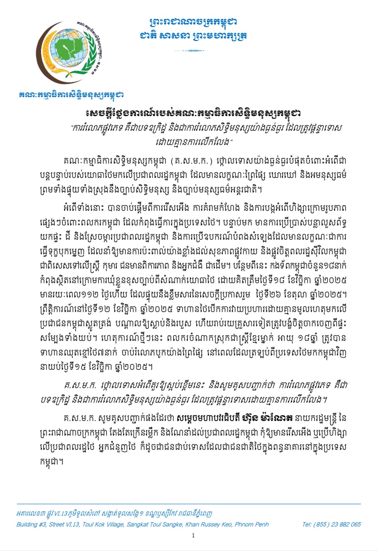 សេចក្តីថ្លែងការណ៍របស់គណៈកម្មាធិការសិទ្ធិមនុស្សកម្ពុជា