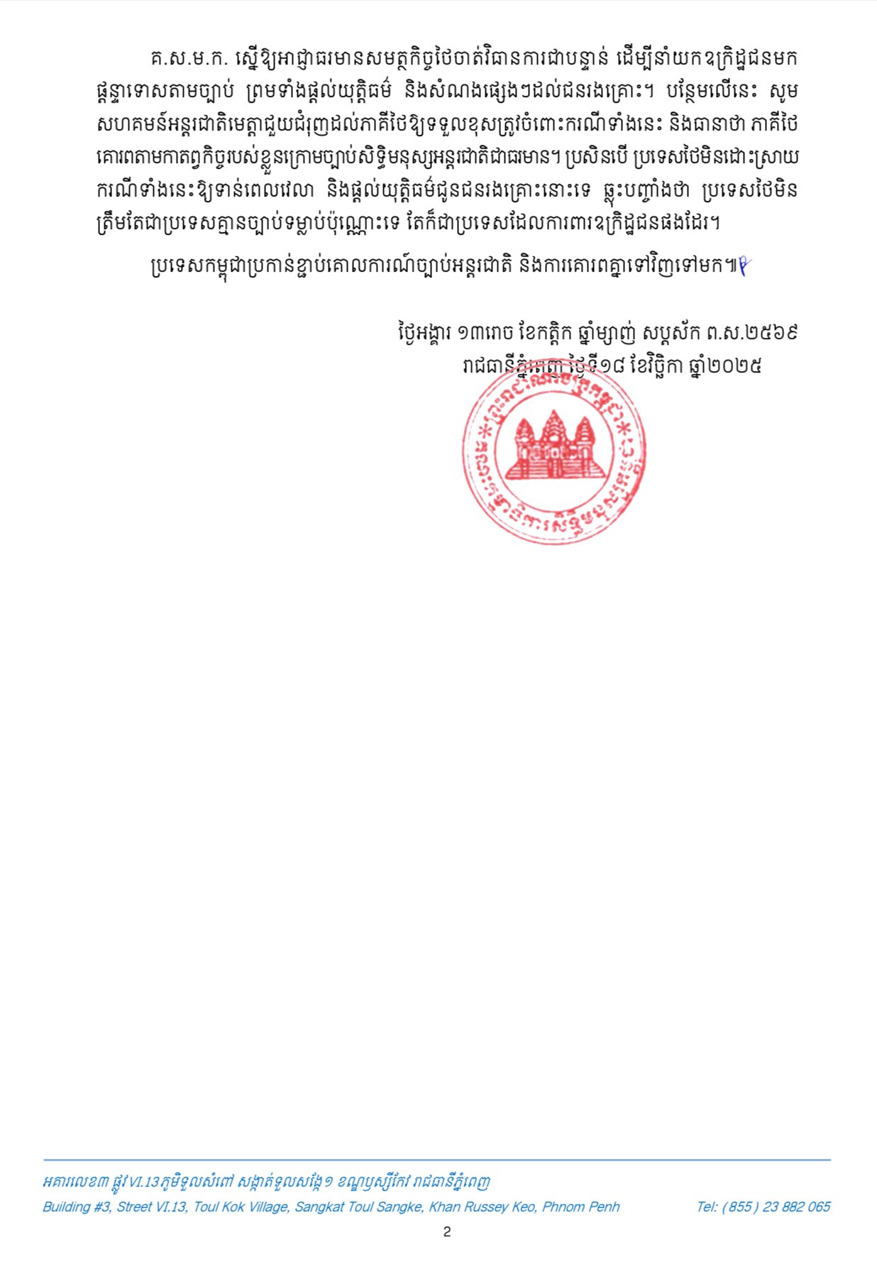 គណៈកម្មាធិការសិទ្ធិមនុស្សកម្ពុជា បានរៀបចំ និងបានដាក់ញត្តិជាបន្ទាន់ទៅ ឧត្តមស្នងការអង្គការសហប្រជាជាតិទទួលបន្ទុកសិទ្ធិមនុស្ស (OHCHR) នៅទីក្រុងហ្សឺណែវ ឧត្តមស្នងការអង្គការសហប្រជាជាតិ