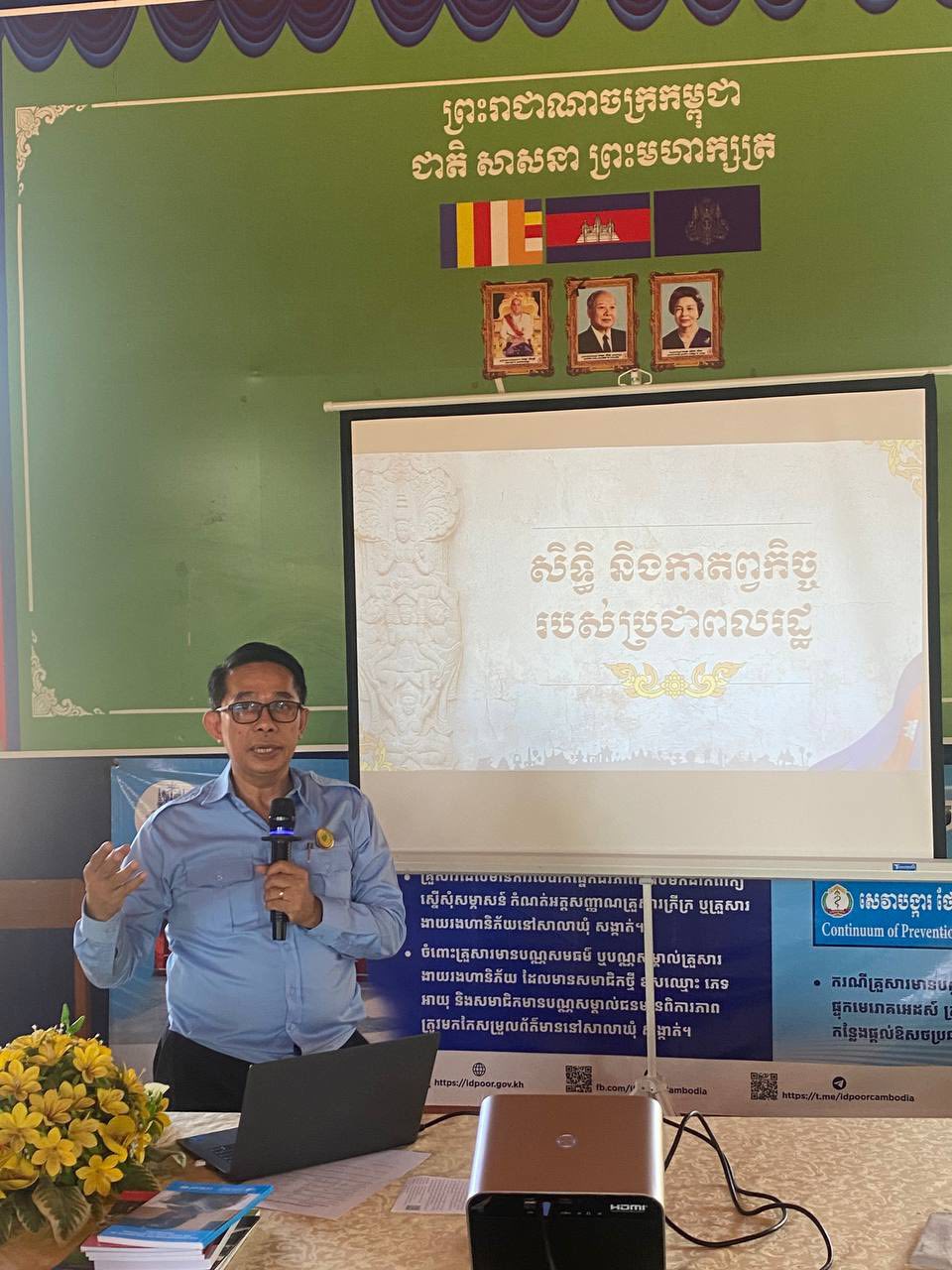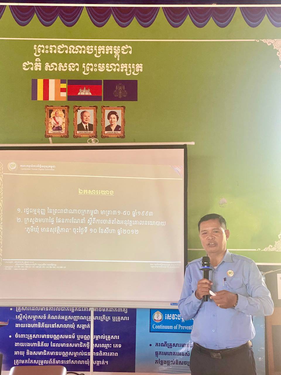 ខេត្តត្បូងឃ្មុំ ៖ ដោយមានការយកចិត្តទុកដាក់របស់ឯកឧត្តមទេសរដ្ឋមន្ត្រី កែវ រ៉េមី ប្រធានគណៈកម្មាធិការសិទ្ធិមនុស្សកម្ពុជា (គ.ស.ម.ក.) បានចាត់តាំងលោកជំទាវ ឆាំ ម៉ារី អនុប្រធាន គ.ស.ម.ក. និងជាអគ្គនាយិកា ដឹកនាំក្រុមការងារចុះអប់រំផ្សព្វផ្សាយស្តីពី «សិទ្ធិមនុស្ស និងច្បាប់ » ដល់ប្រជាពលរដ្ឋចំនួន៣៣នាក់ ស្រីចំនួន៧នាក់ នៅសាលាឃុំគងជ័យ ស្រុកអូររាំងឳ ខេត្តត្បូងឃ្មុំ នៅថ្ងៃចន្ទ ៤រោច ខែចេត្រ ឆ្នាំម្សាញ់ សប្តស័ក ២៥៦៩ ដែលត្រូវនឹងថ្ងៃទី៦ ខែមេសា ឆ្នាំ២០២៦។ប្រធានបទអប់រំផ្សព្វផ្សាយមានចំនួនបីគឺ ១.យន្តការការពារសិទ្ធិមនុស្សនៅកម្ពុជា ២.សិទ្ធិនិងកាតព្វកិច្ចពលរដ្ឋ និង៣.សិទ្ធិ សេរីភាព និងច្បាប់។
