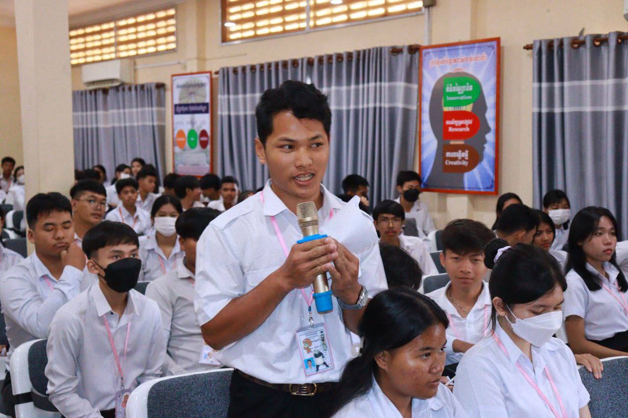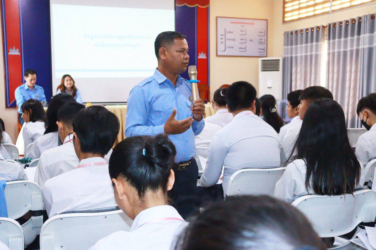 លោកជំទាវ ឆាំម៉ារី អនុប្រធានគណៈកម្មាធិការសិទ្ធិមនុស្សកម្ពុជា ដឹកនាំក្រុមការងារគណៈកម្មាធិការសិទ្ធិមនុស្សកម្ពុជា ចុះអប់រំផ្សព្វផ្សាយអំពី”សិទ្ធិមនុស្ស និងច្បាប់”នៅវិទ្យាល័យហ៊ុនសែន បុរី១០០ខ្នង