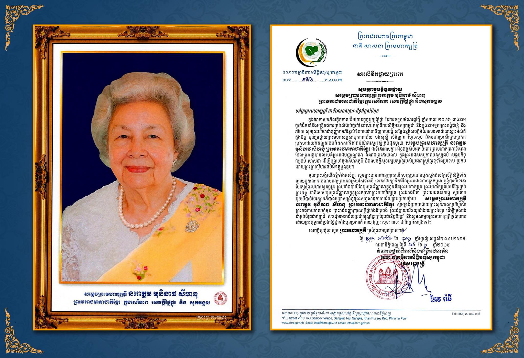 សូមក្រាបបង្គំទូលថ្វាយ សម្តេចព្រះមហាក្សត្រី នរោត្តម មុនិនាថ សីហនុ ព្រះវររាជមាតាជាតិខ្មែរក្នុងសេរីភាព សេចក្តីថ្លៃថ្នូរ និងសុភមង្គល ក្នុងវរោកាសអភិលក្ខិតកាល ដ៏មហានក្ខត្តឫក្សថ្លៃថ្លា នៃការទទួលអំណរឆ្នាំថ្មី...