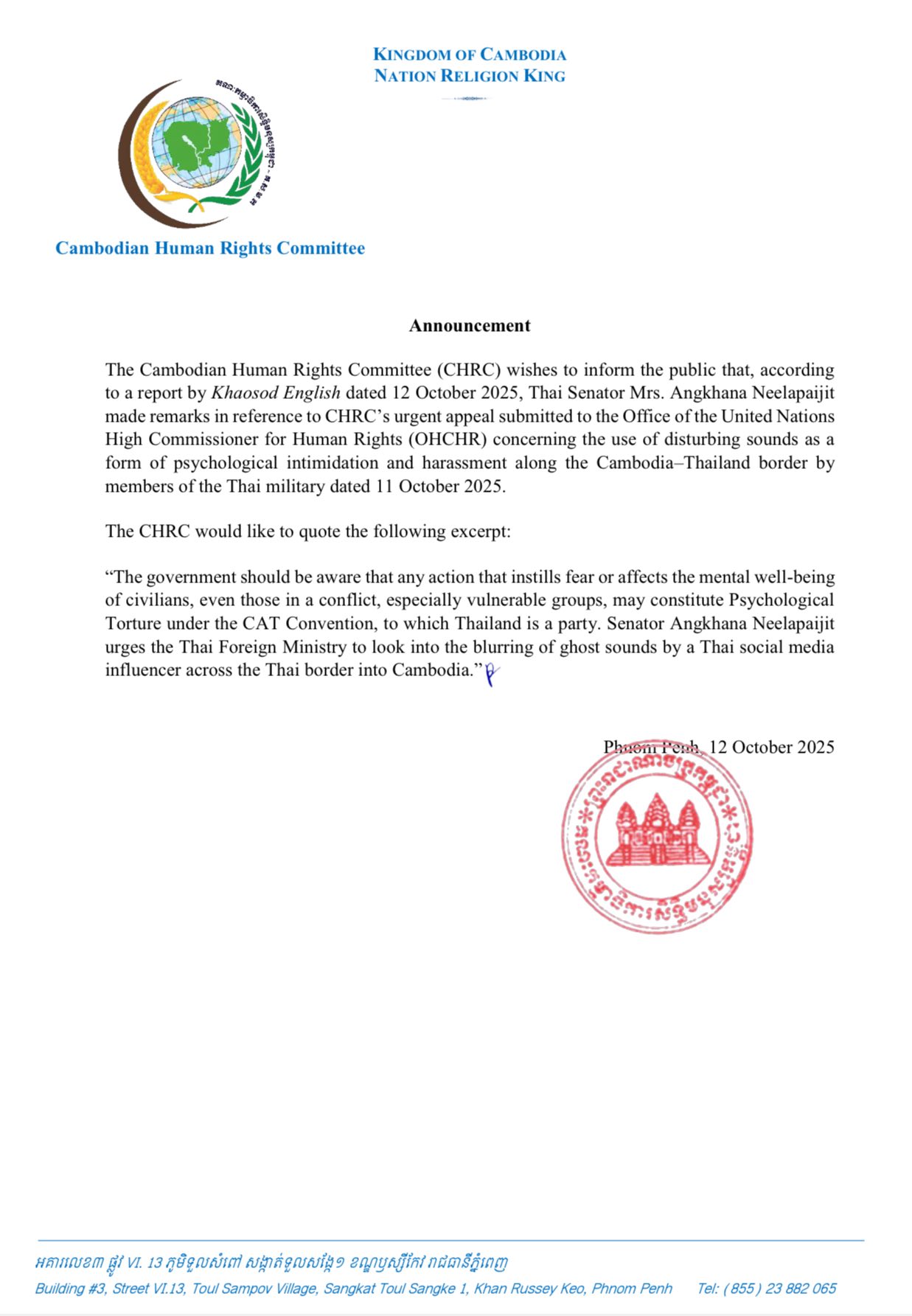 Thai Senator Angkhana Neelapaijit has urged Thailand's Ministry of Foreign Affairs to investigate a case in which a social media celebrity used ghost voices at the Thai border to enter Cambodia.