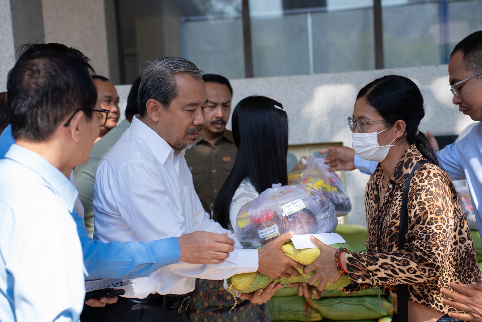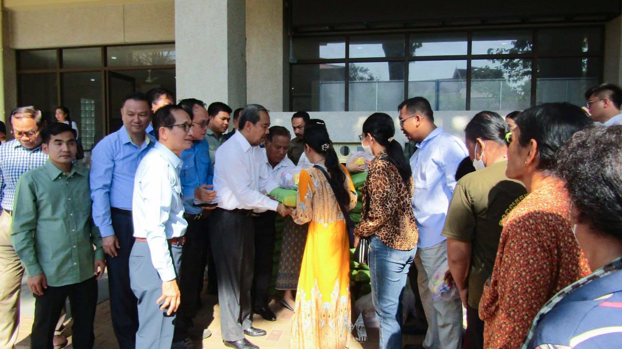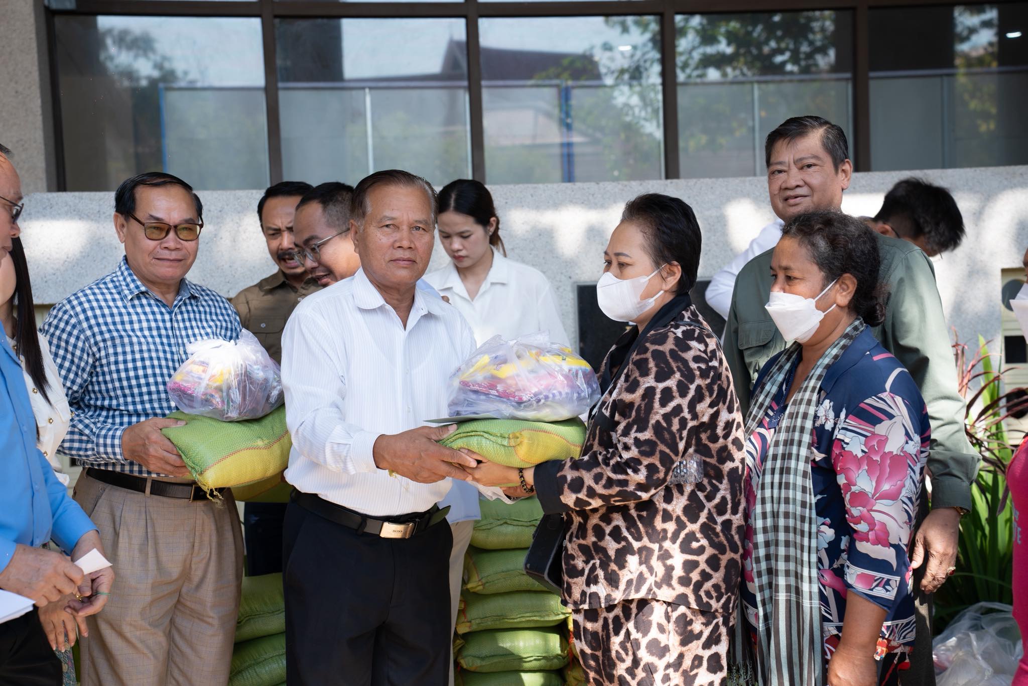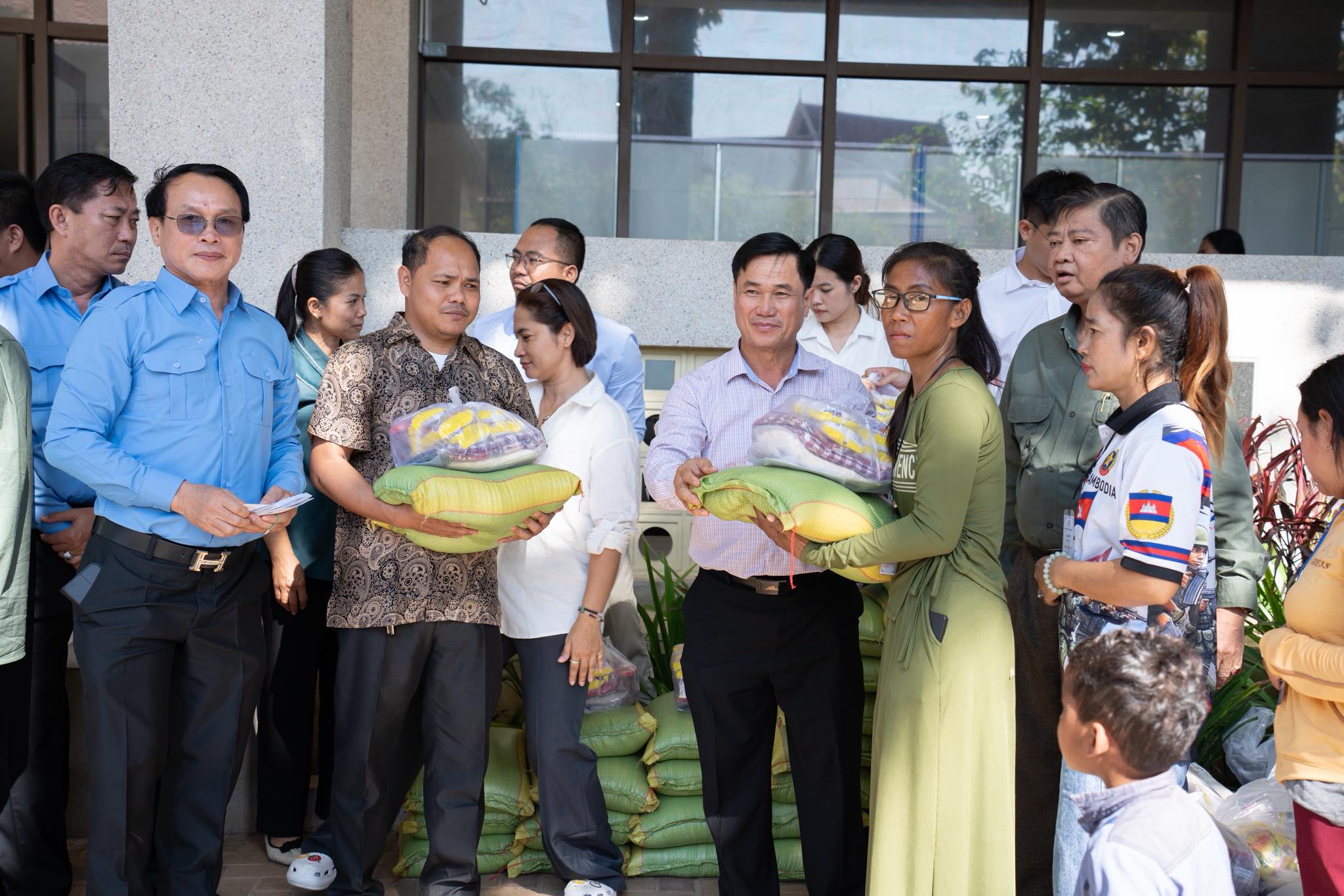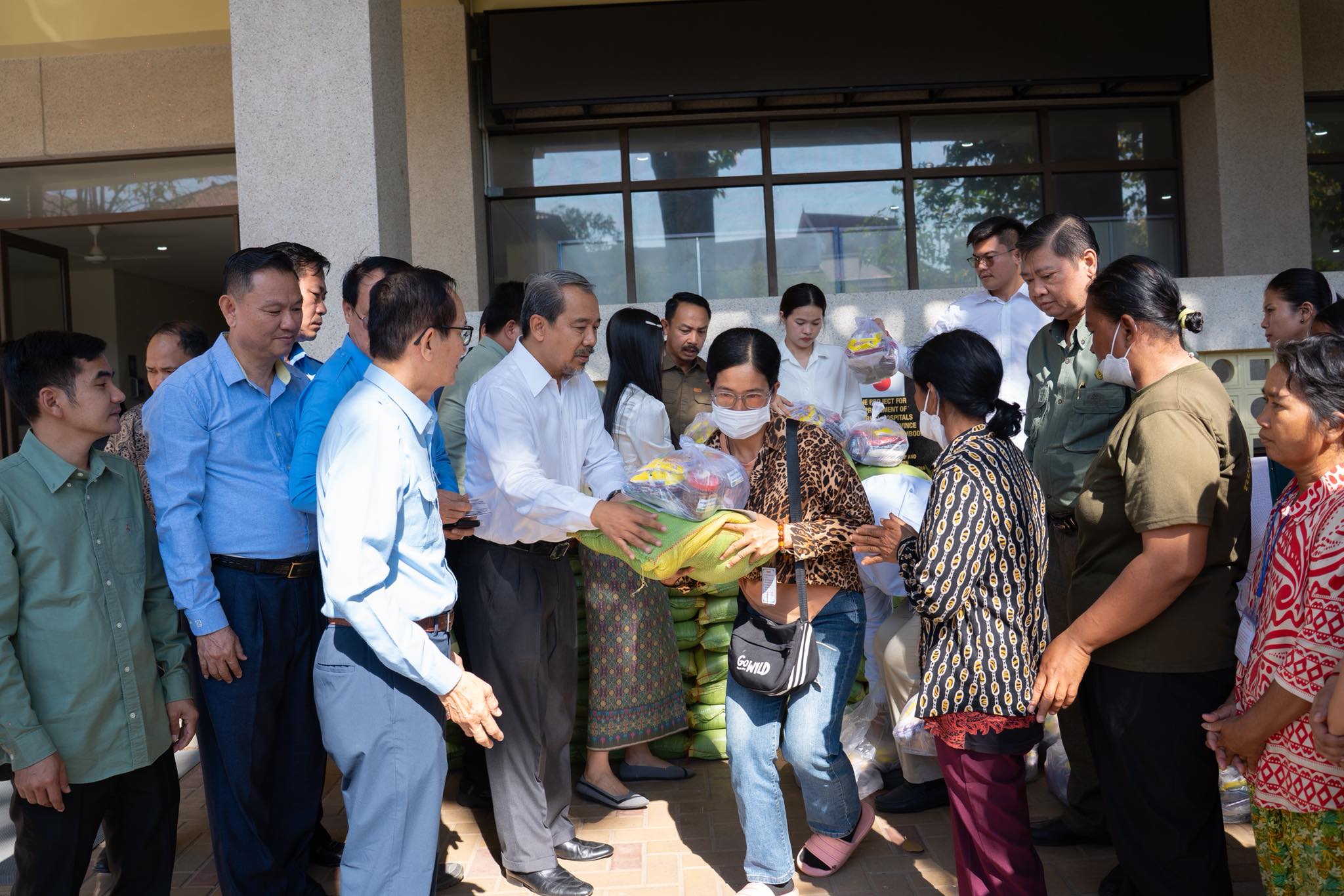 To help ease their hardships and provide encouragement, HE Keo Remy gave gifts to the soldiers and their families, which included various other food items such as rice, noodles, dried fish, scarves, and some cash.