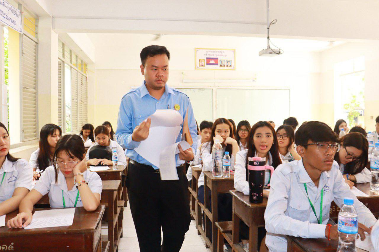 Phnom Penh: HE Keo Remy, Senior Minister, President of the Cambodian Human Rights Committee (CHRC), tasked HE Chham Mari, CHRC Vice President and Director General of the General Department of Investigation and Human Rights Education, with leading a CHRC working group to Tuek Laok High School, Phnom Penh, on Thursday morning, 5 June 2025, to educate and raise awareness about “Human Rights and Law” for 78 (38 female) students.