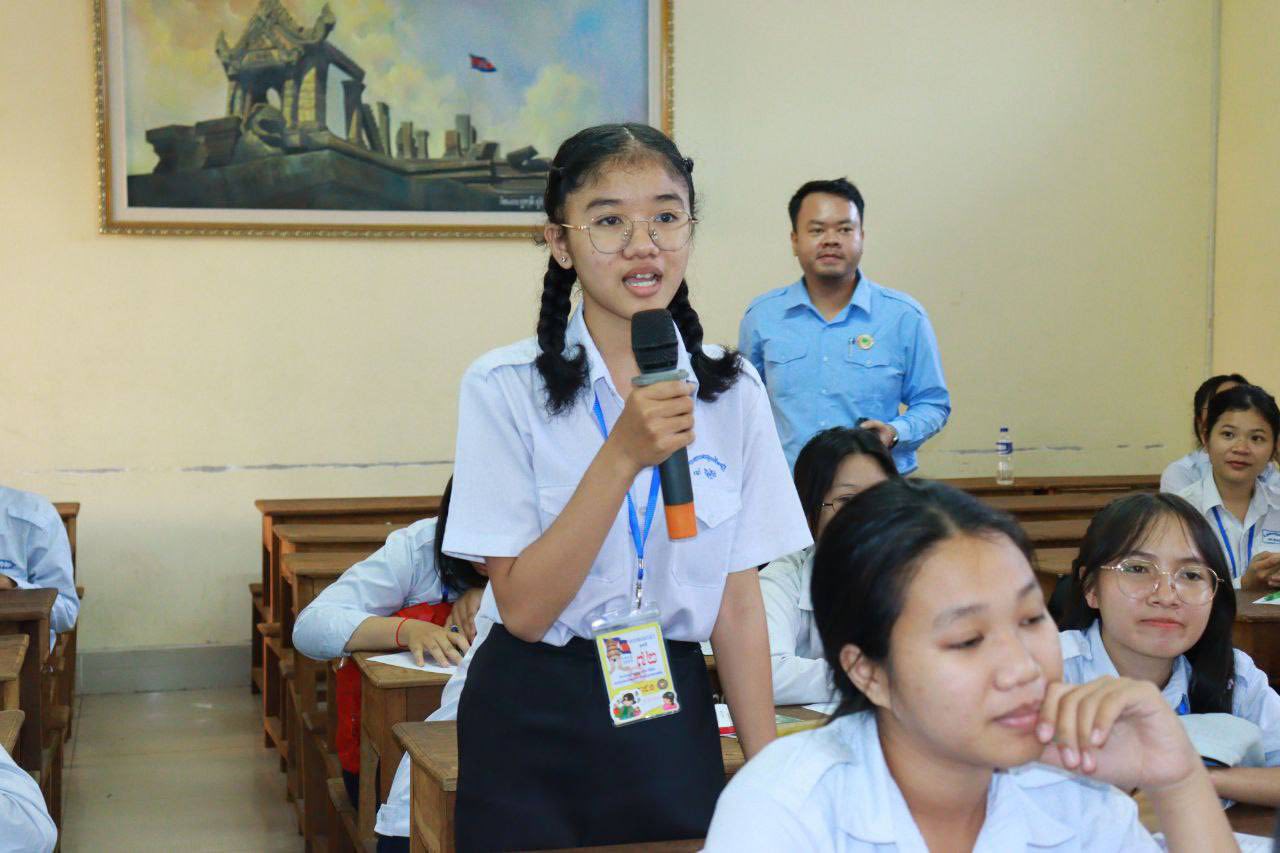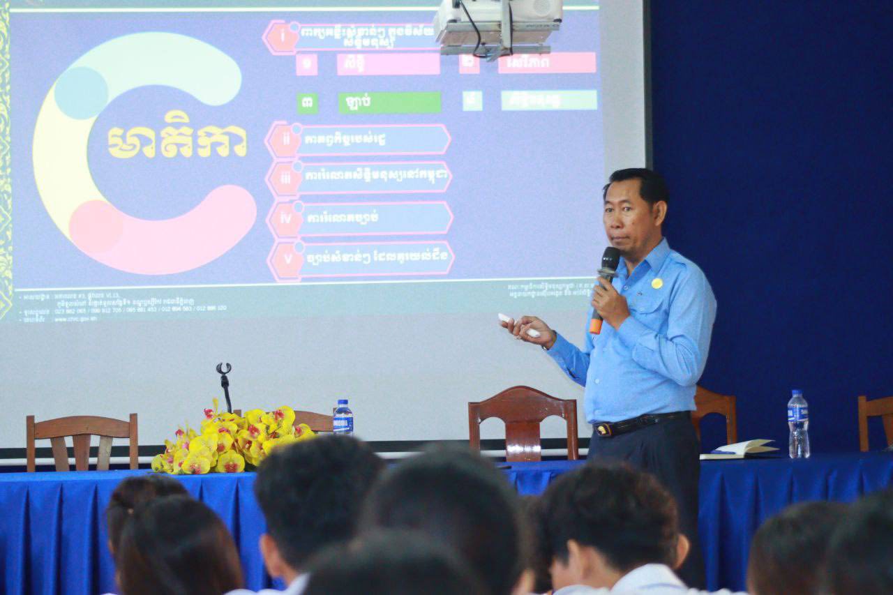 សិស្សានុសិស្សនៃវិទ្យាល័យហ៊ុនសែនប៊ុនរ៉ានីផ្សារដើមថ្កូវ ចូលរួមកម្មវិធីអប់រំផ្សព្វផ្សាយស្តីពី «សិទ្ធិមនុស្ស និងច្បាប់» រៀបចំដោយក្រុមការងារគណៈកម្មាធិការសិទ្ធិមនុស្សកម្ពុជា