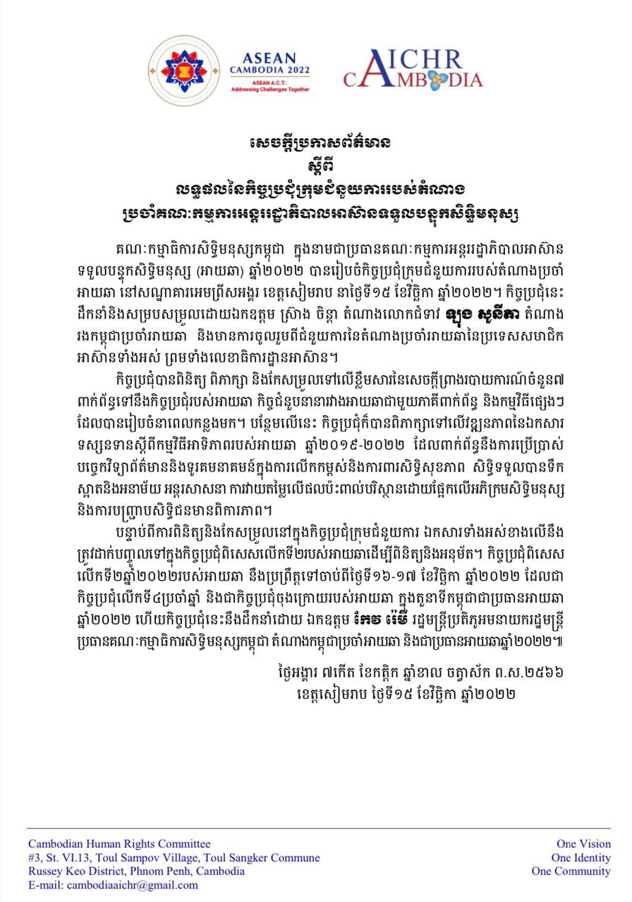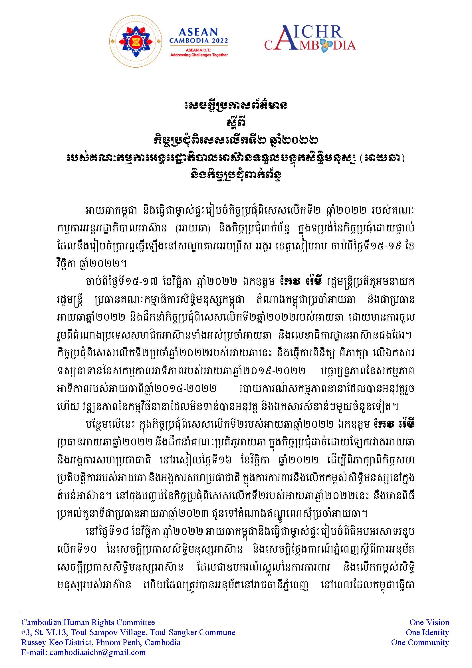 ឯកឧត្តម កែវ រ៉េមី អញ្ជើញជាអធិបតីក្នុងកិច្ចប្រជុំពិសេសលើកទី២ របស់គណៈកម្មការអន្តររដ្ឋាភិបាលអាស៊ានទទួលបន្ទុកសិទ្ធិមនុស្ស (អាយឆា-AICHR)