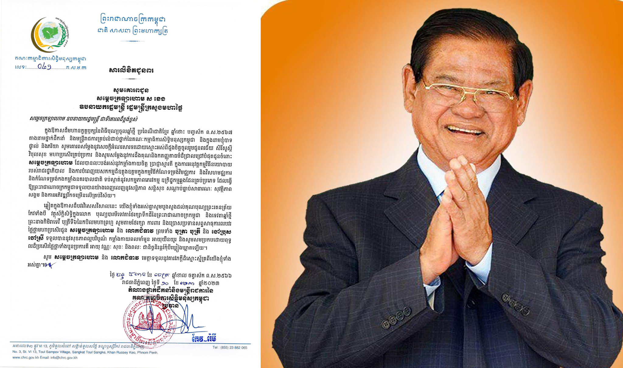 សារលិខិតជូនពរ សូមគោរពជូន សម្ដេចក្រឡា ហោម ស ខេង ឧបនាយករដ្ឋមន្ត្រី រដ្ឋមន្ត្រីក្រសួងមហាផ្ទៃ