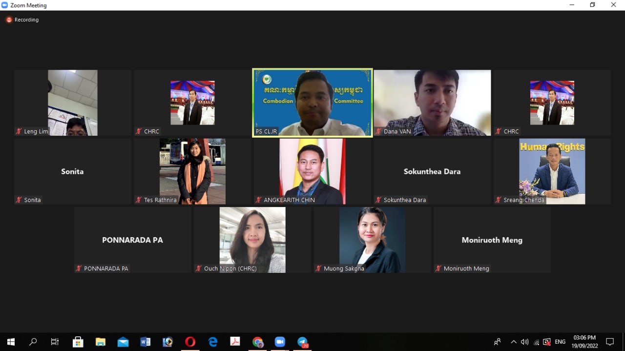 នារសៀលថ្ងៃចន្ទ ២រោច ខែភទ្របទ ឆ្នាំខាល ចត្វាស័ក ព.ស.២៥៦៦ ត្រូវនឹងថ្ងៃទី១២ ខែកញ្ញា ឆ្នាំ២០២២ នៅសាលប្រជុំនៃគណៈកម្មាធិការសិទ្ធិមនុស្សកម្ពុជា (គ.ស.ម.ក.) មានរៀបចំកិច្ចប្រជុំមួយរវាងក្រុមការងារ គ.ស.ម.ក. ដឹកនា...